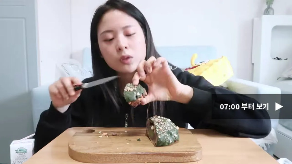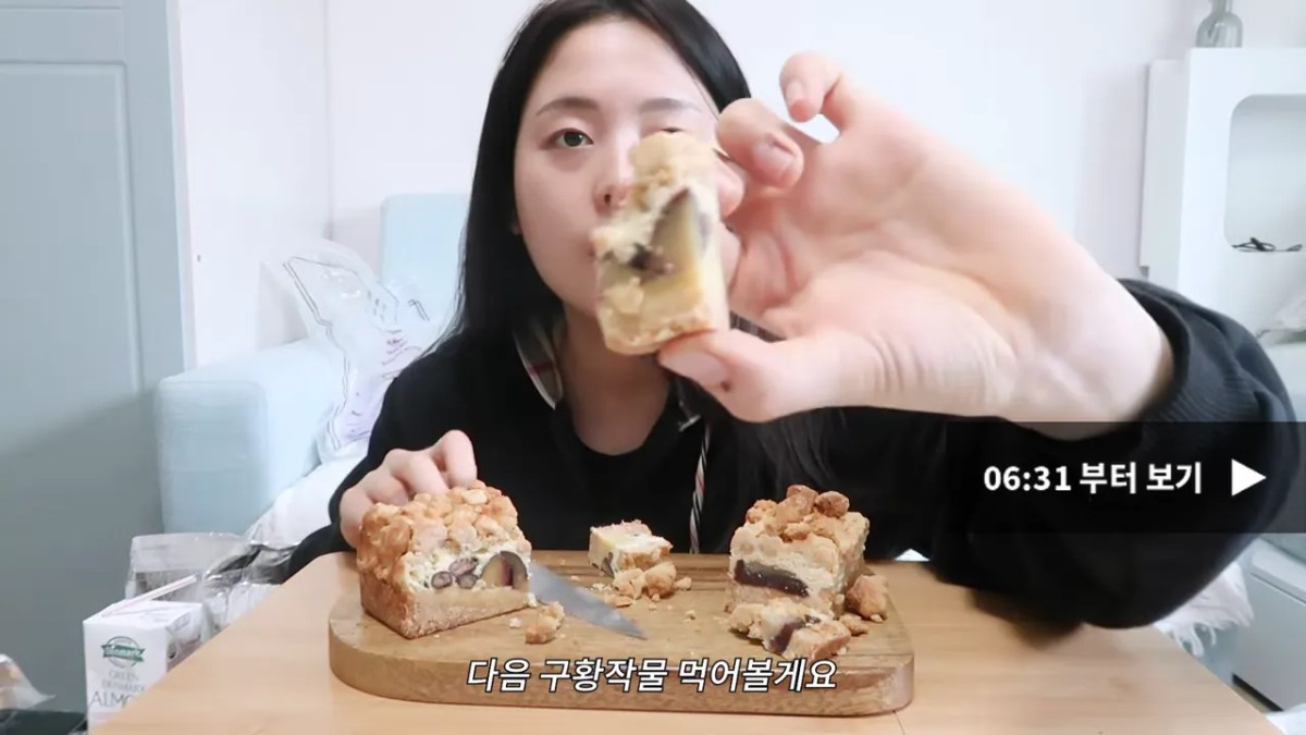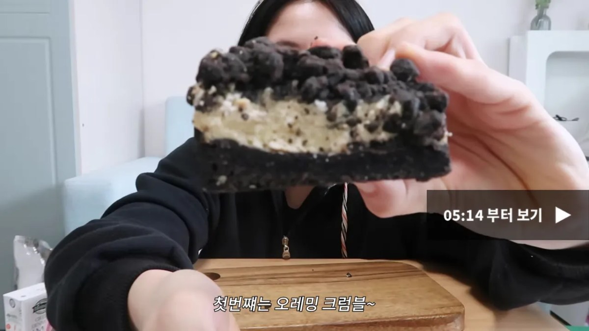 음, 이번에 빵 택배. 에이밍 마켓, 박스 마켓으로 시켰어요. 저는 어차피 이거 오면 다 한꺼번에 소분을 하거든요. 소분하면서 하나씩 먹어보려고요. 이렇게 오레밍 크럼블이예요. 에이밍은 비건 빵을 만드는 곳인데, ‘비건인데 이런 맛이 난다고?’ 하면서 엄청 신기한 빵케팅도 엄청 치열한 그런 곳입니다. 안 좋은 점이 부스러기들이 엄청 떨어져요. 크럼블들이 뭔가 딱 접착이 안 된 느낌? 우리가 생각하는 오레오보다는 덜 달거든요. 치즈랑 궁합이 진짜 좋아요. 크림치즈도 짠맛보다는 좀 고소 담백한 맛이 많이 나는, 에이밍 마켓이 전체적으로 맛이 막 강한 느낌이 아니라서 씹으면 씹을수록 진한 맛이 올라오는? 너무 맛있습니다.
